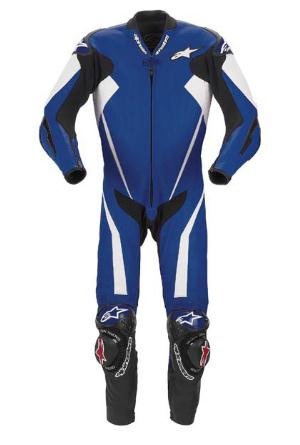 Alpinestars Mens Race Replica One-Piece Motorcycle Suit Blue 58 315608-70-58 . MotoGP-developed race technology for the track or streetFull-grain, 12-14mm leather for excellent abrasion resistanceAlpinestars exclusive, patented high-modulus thermoplastic external shoulder protectionUnique, seamless elbow and arm constructionMultiple-stitched main seam construction for maximum tear resistanceExternal one-piece 90 deg TPU knee and tibia protection for improved protectionInner surface of knee/tibia area has soft-grip area for improved contact and feel on the bikePatented 45 deg leather flex zones for improved fit and multi-directional flexibilityMotoGP profile, ventilated back hump for improved aerodynamics and ventilation performaceUltra-vented frontal surface area provides maximum cooling effect when ridingIncreased stretch Kevlar panels reduce resistance and improve comfortRemovable internal liner is 100% anti-bacterial and washable; has strategically placed soft protectionChest pad compartments with PE padding (Alpinestars Bionic Chest Guards available separately)Alpinestars Bionic Race back protector, CE Level 2 certified, included; snaps into place with secure snap connectionsSoft neoprene collar and cuffsAlpinestars GP knee sliders includedYKK Semi Auto Lock zippersDistinctive Alpinestars designs and color combinations with synthetic leather Alpinestars logosBlack and blue colored suits are treated to reduce heat transfer in hot, sunny conditionsAvailable in European sizes 46-60All items are sold individually unless specifically described otherwise in the product description