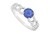 Sapphire and Diamond Engagement Ring : 14K White Gold - 0.75 CT TGW Size 10.5