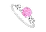 Pink Sapphire and Diamond Engagement Ring : 14K White Gold - 0.75 CT TGW Size 9